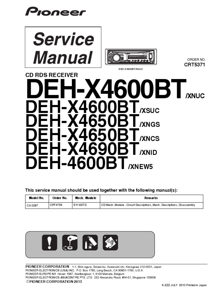 Pioneer Deh X4600bt X4600bt X4650bt X4690bt Deh 4600br Crt5371 Service Manual Download Schematics Eeprom Repair Info For Electronics Experts