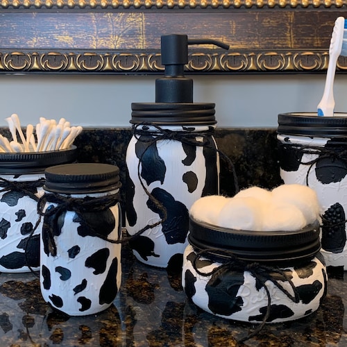 Cow Mason Jar Bathroom Set Rustic Country Bathroom Etsy